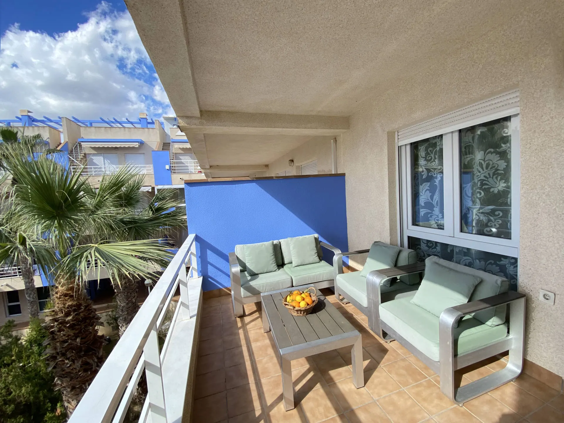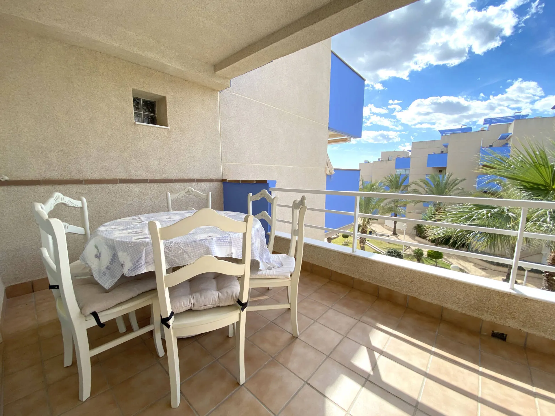 Apartamento ubicado en el complejo Calas de Aguamarina en Cabo Roig, en primera línea de mar. La vivienda se encuentra en la 2ª planta, en la parte interior y más tranquila del residencial, ofreciendo mayor privacidad y vistas al mar y a las zonas ajardinadas.