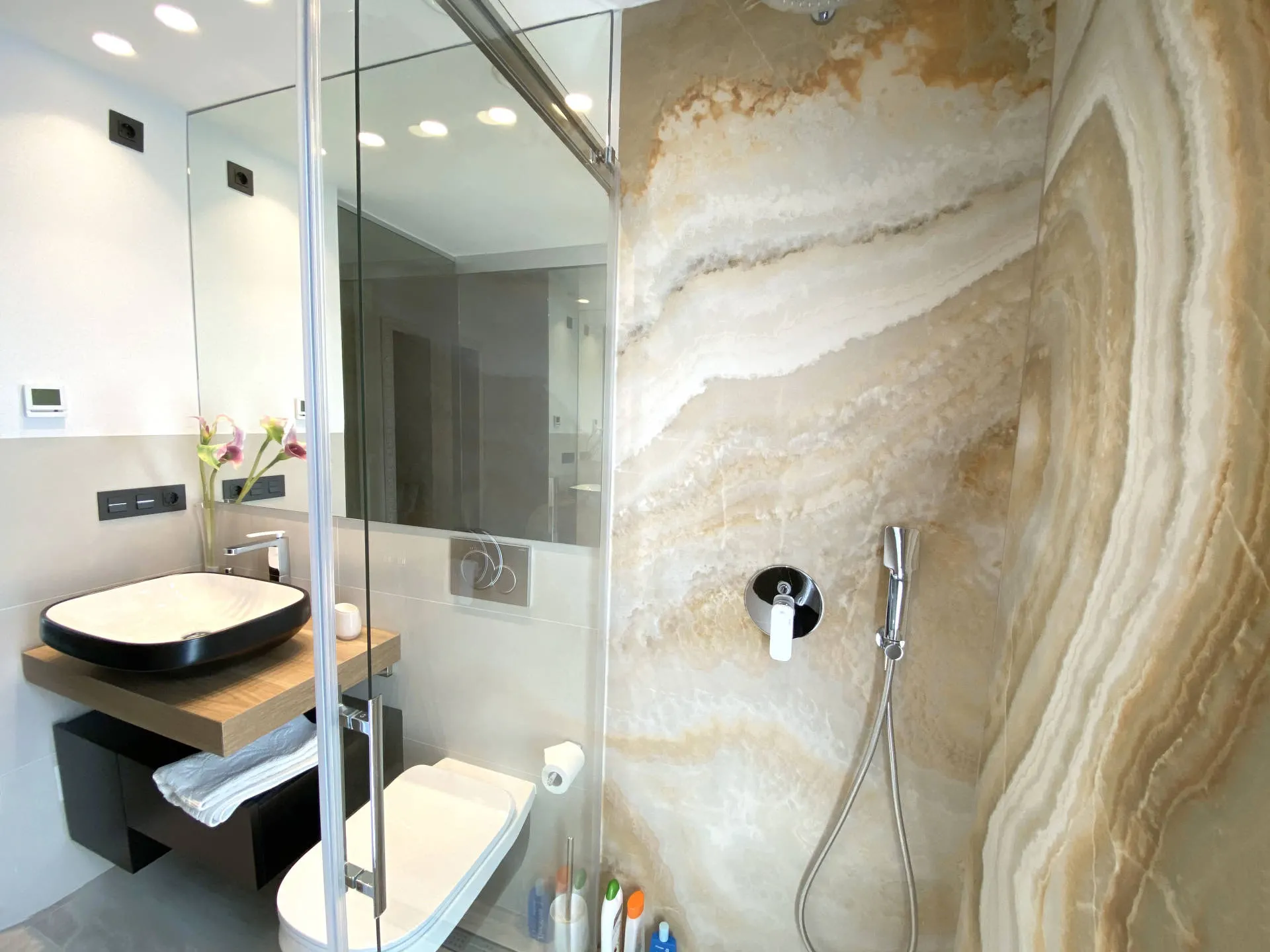Apartament znajduje się na 2. piętrze i został zaprojektowany przez dekoratora wnętrz, co nadaje mu spójny, elegancki charakter oraz podkreśla jakość wykończenia. Przemyślany układ przestrzeni zapewnia komfort zarówno większym rodzinom, jak i grupom do 6 osób.