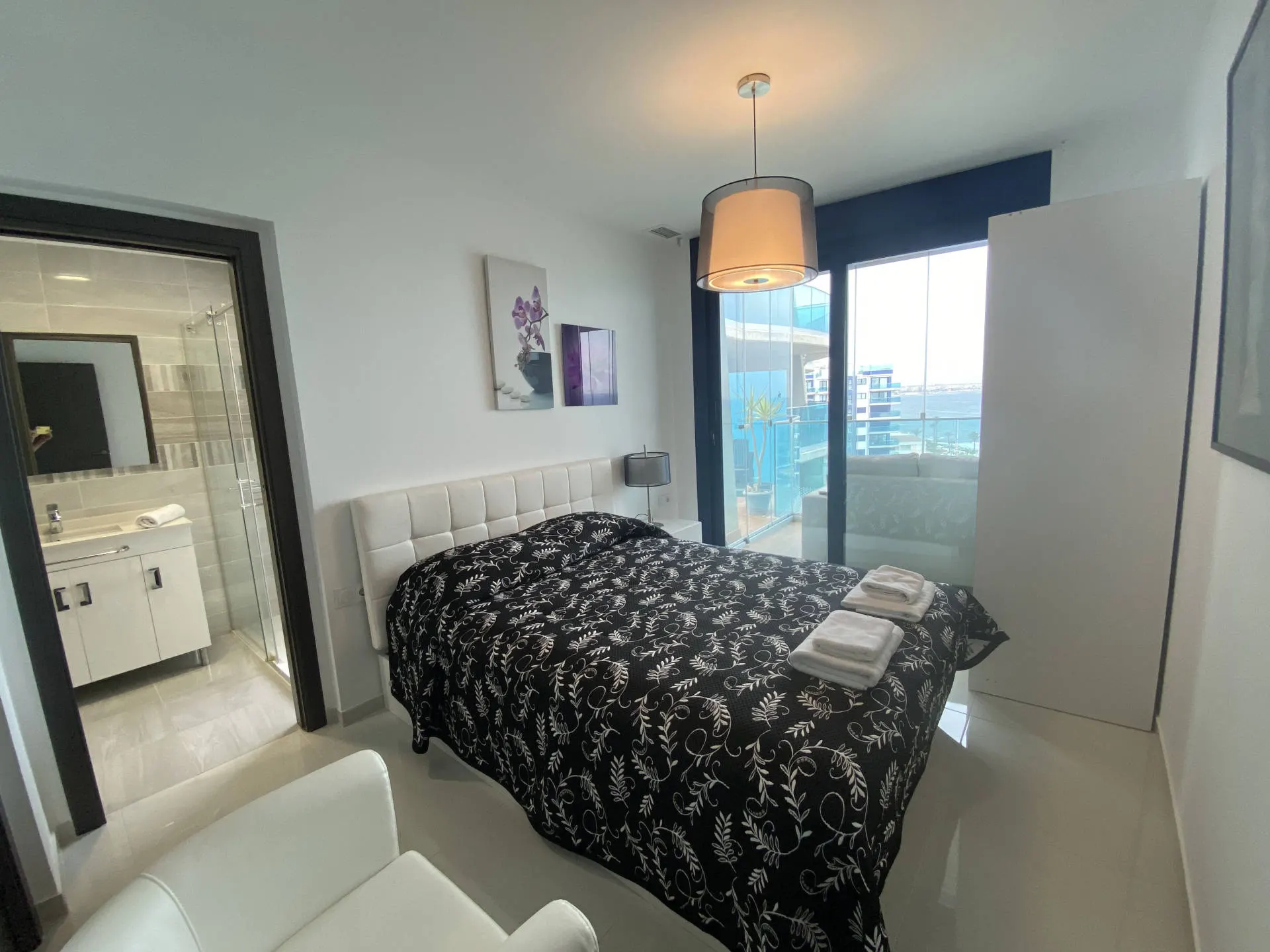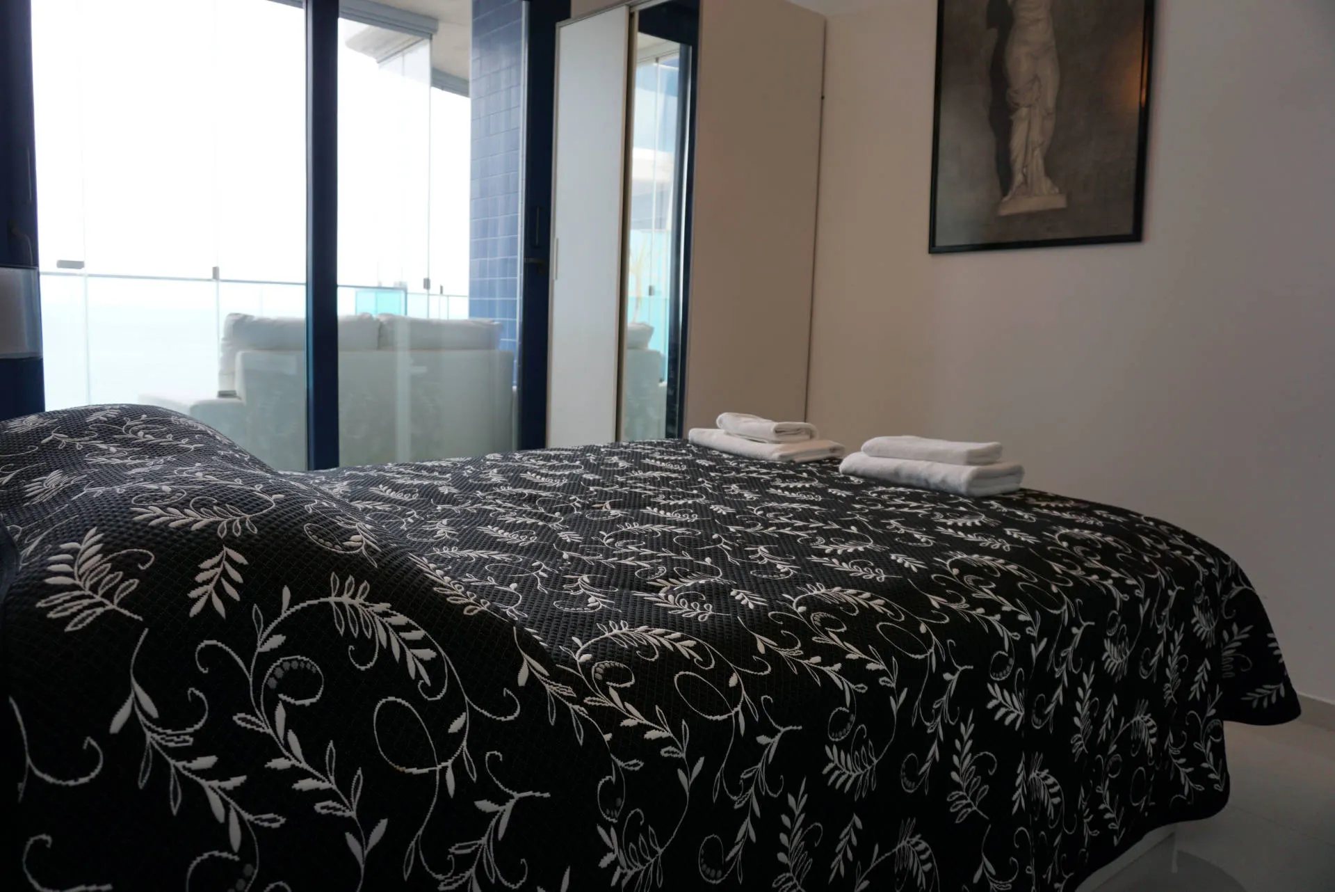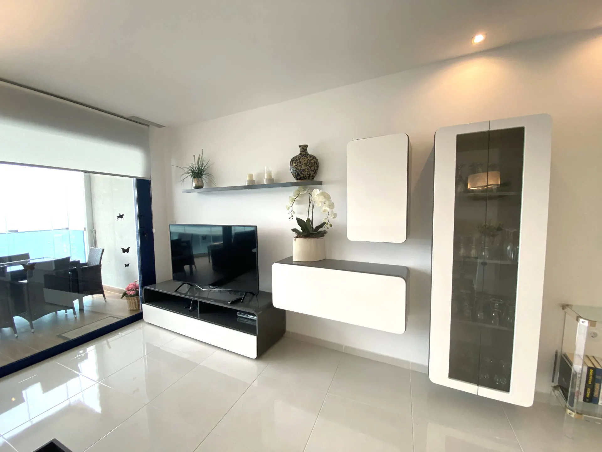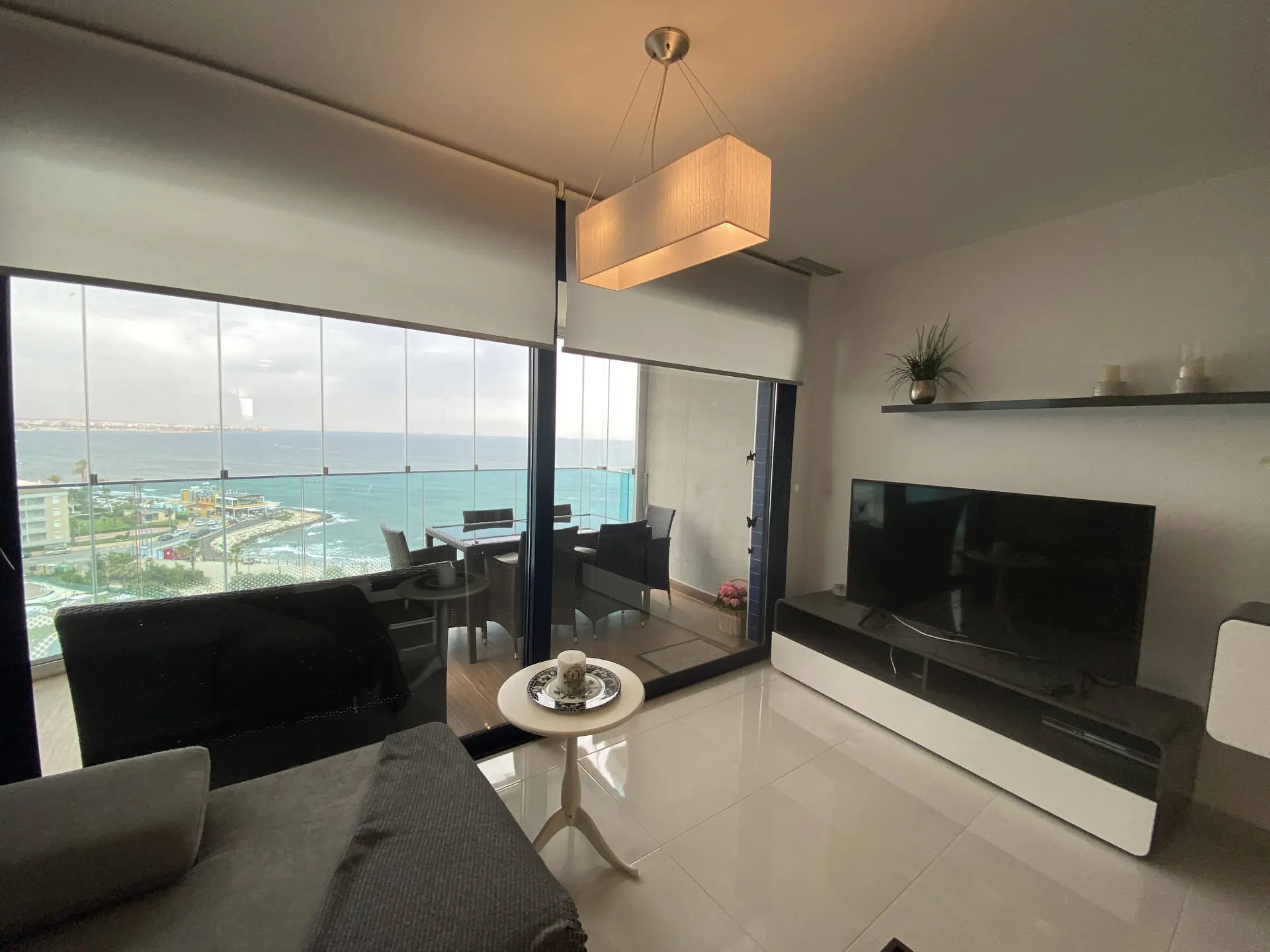 Dodatkowym atutem jest duży taras, który stanowi naturalne przedłużenie części dziennej i pozwala cieszyć się widokiem na morze oraz śródziemnomorskim klimatem przez cały dzień.