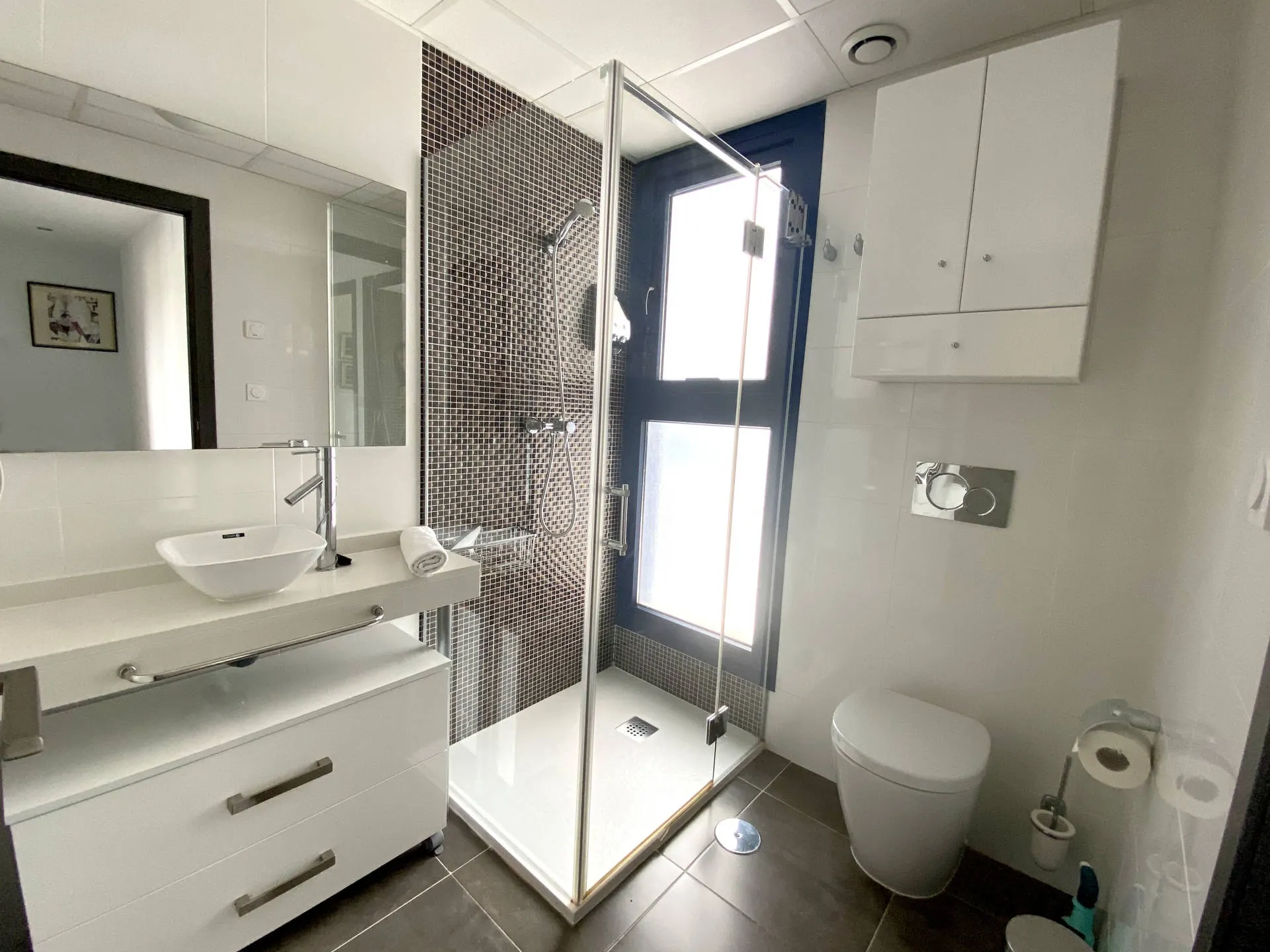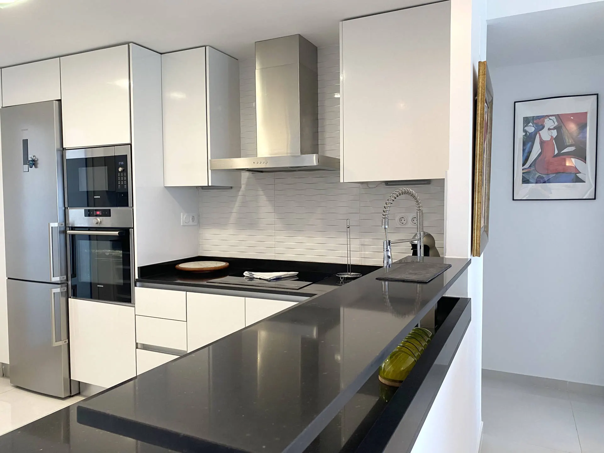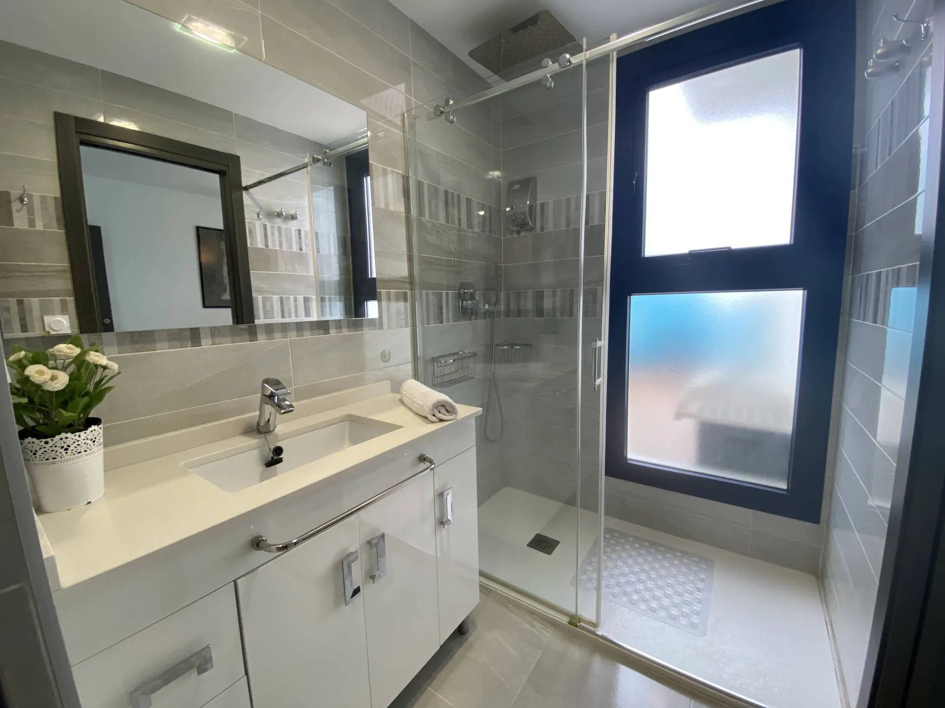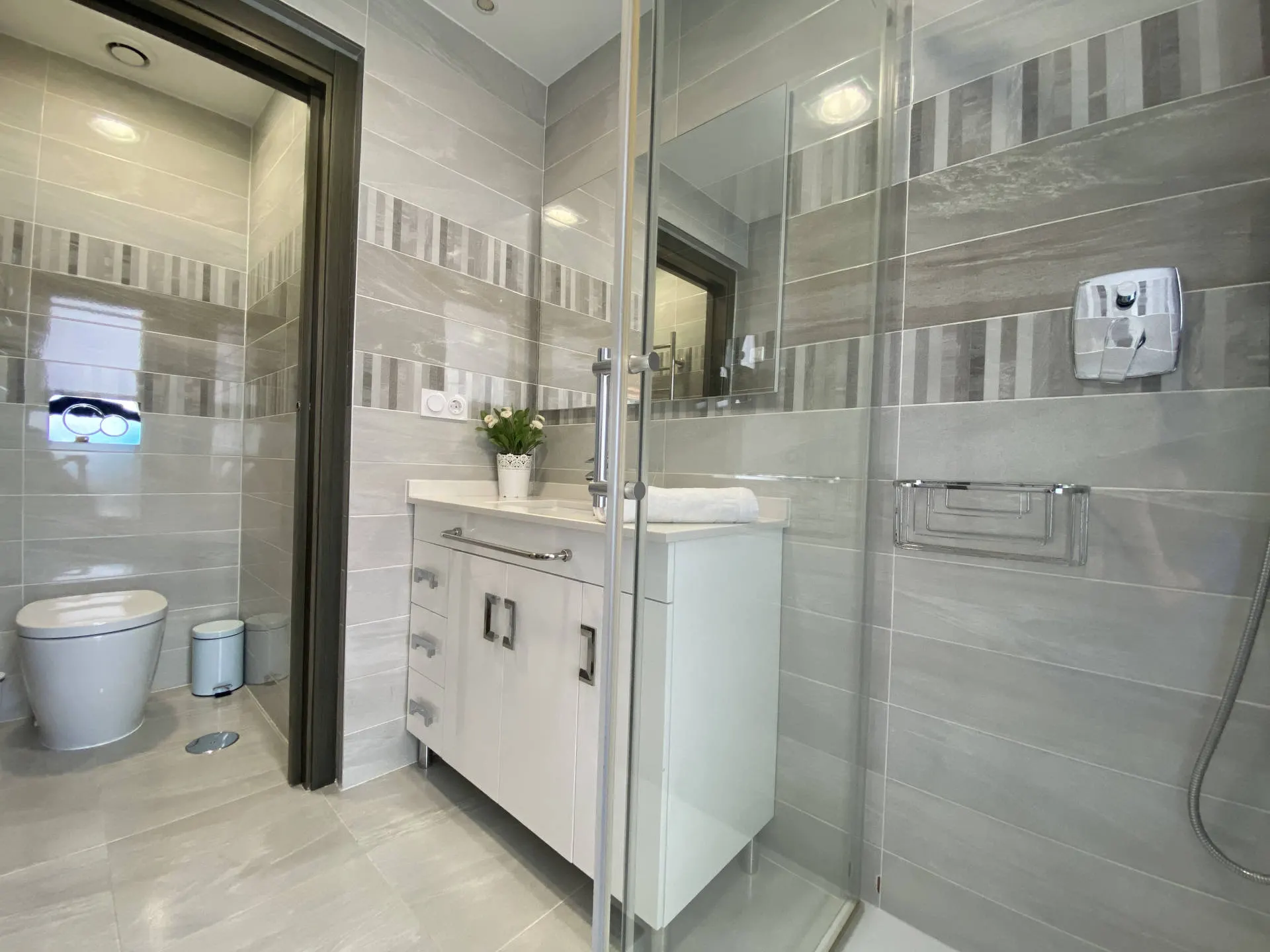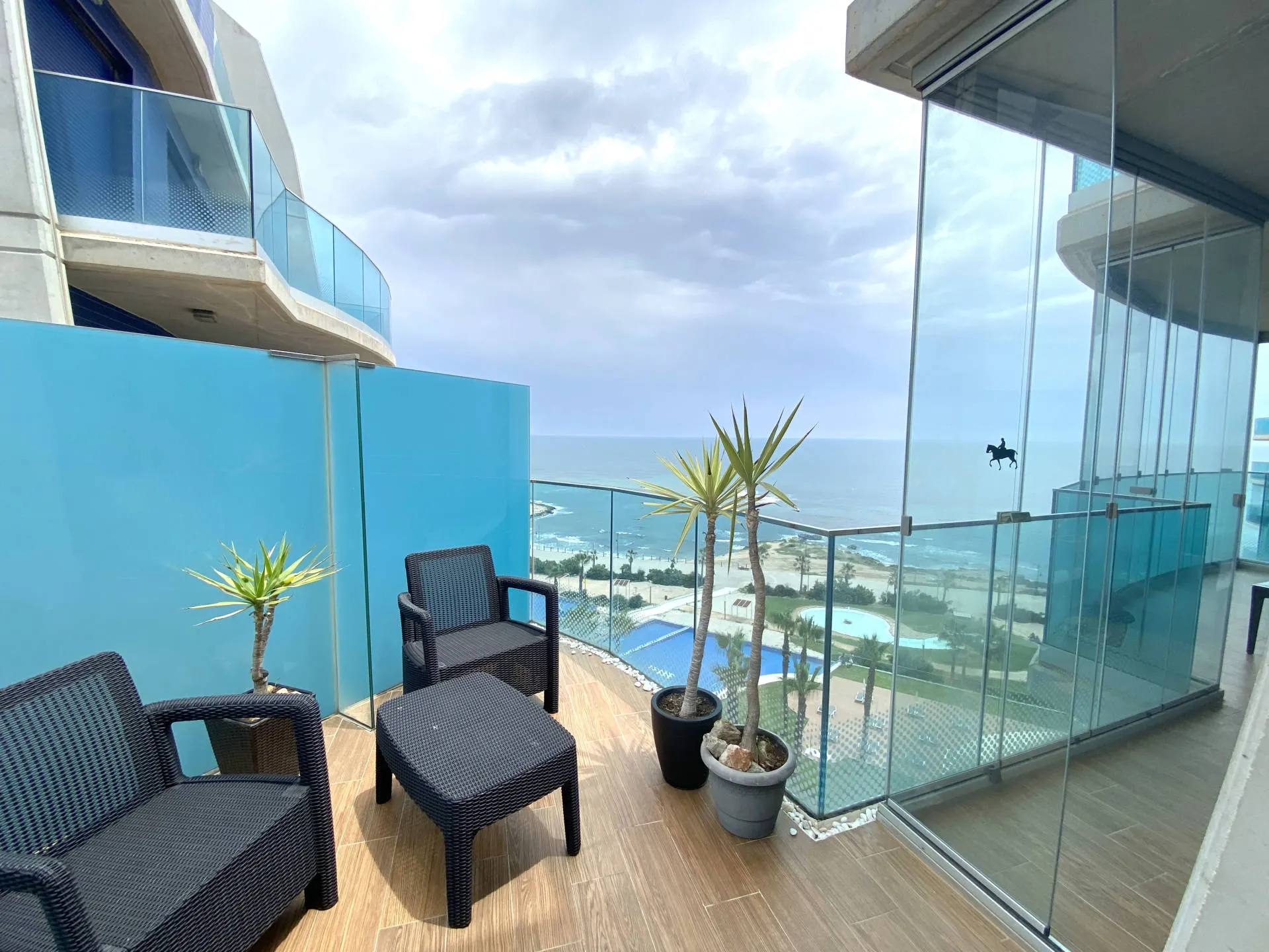 Dodatkowym atutem jest duży taras, który stanowi naturalne przedłużenie części dziennej i pozwala cieszyć się widokiem na morze oraz śródziemnomorskim klimatem przez cały dzień.