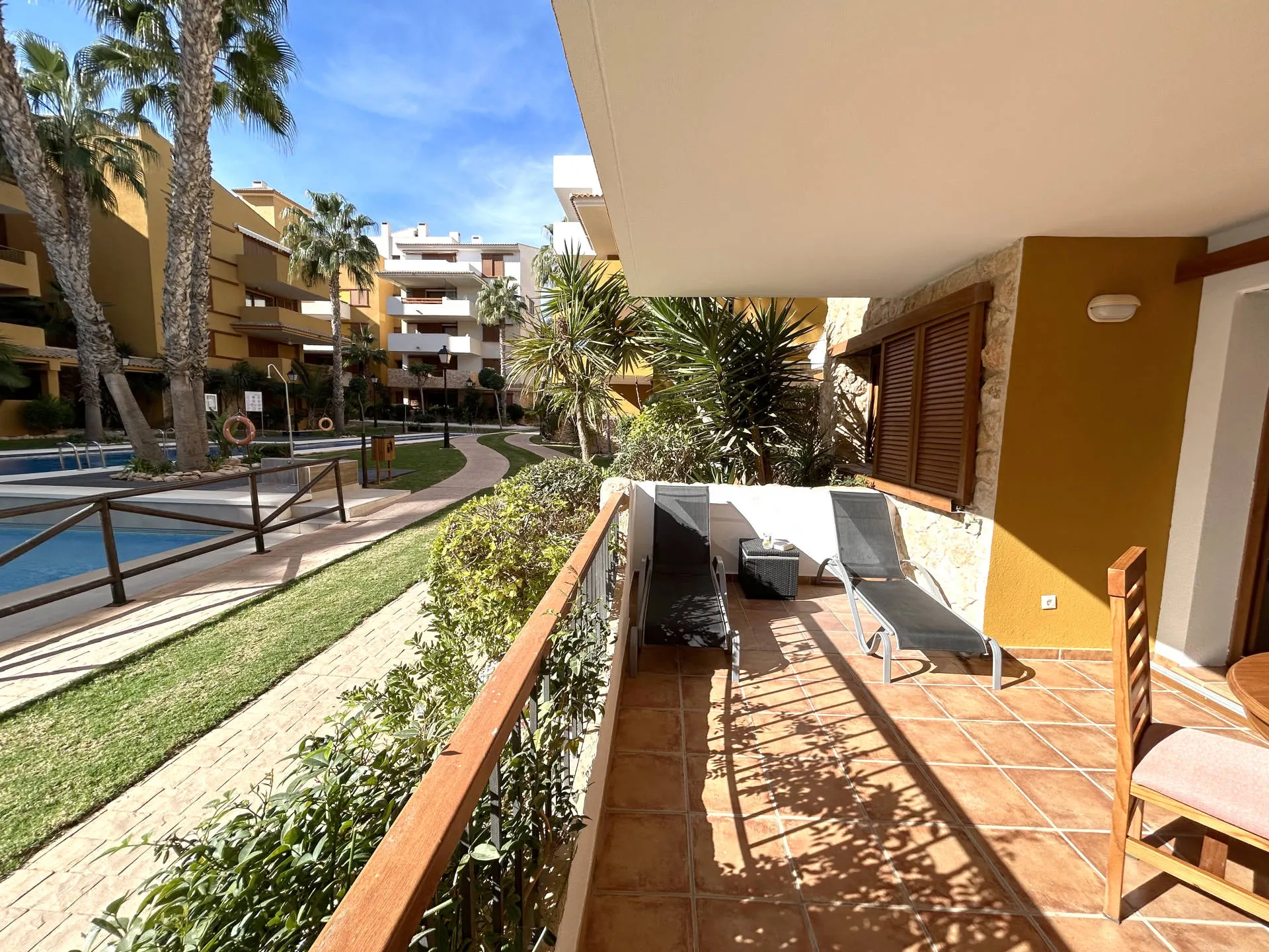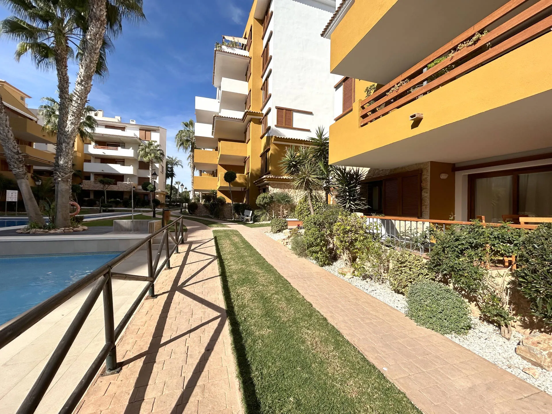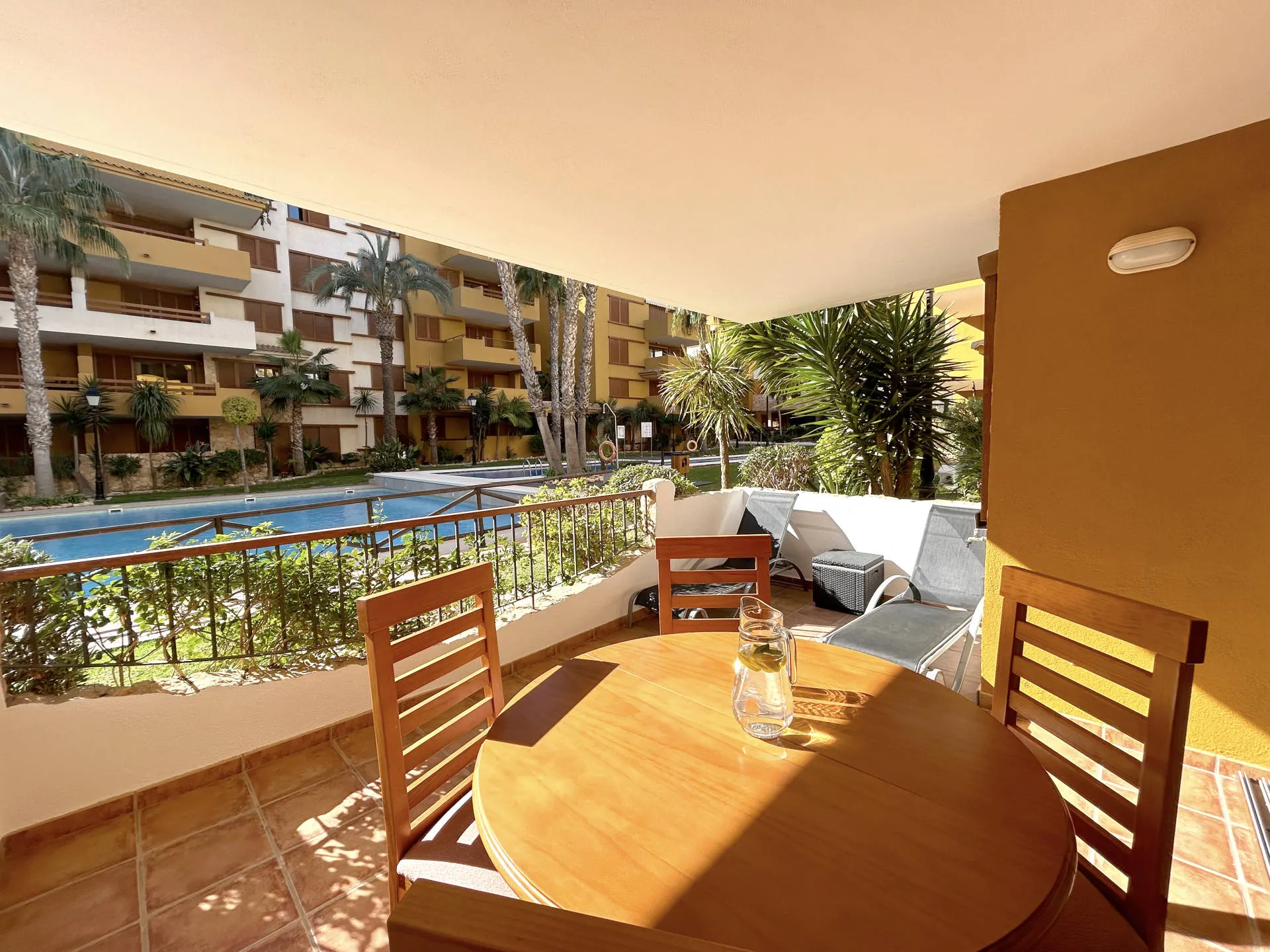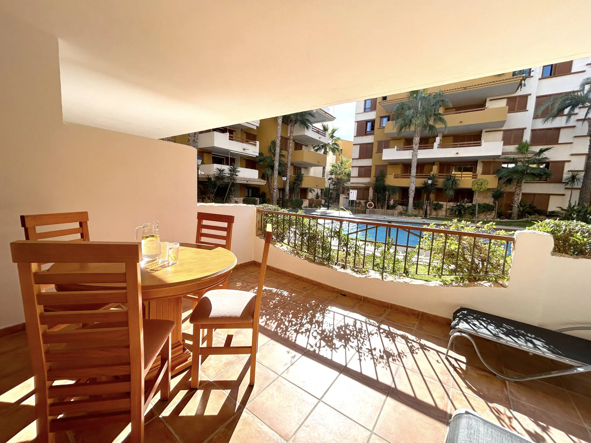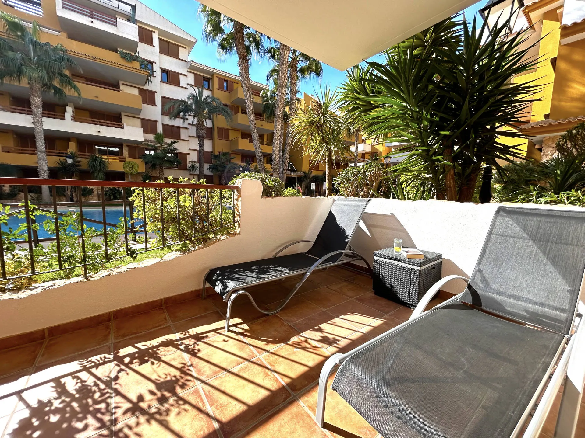 Nowoczesny apartament położony w kompleksie La Recoleta w Punta Prima, w bezpośrednim sąsiedztwie morza. Nieruchomość znajduje się na parterze i oferuje bezpośredni dostęp do strefy basenowej, co zapewnia wyjątkowy komfort wypoczynku.