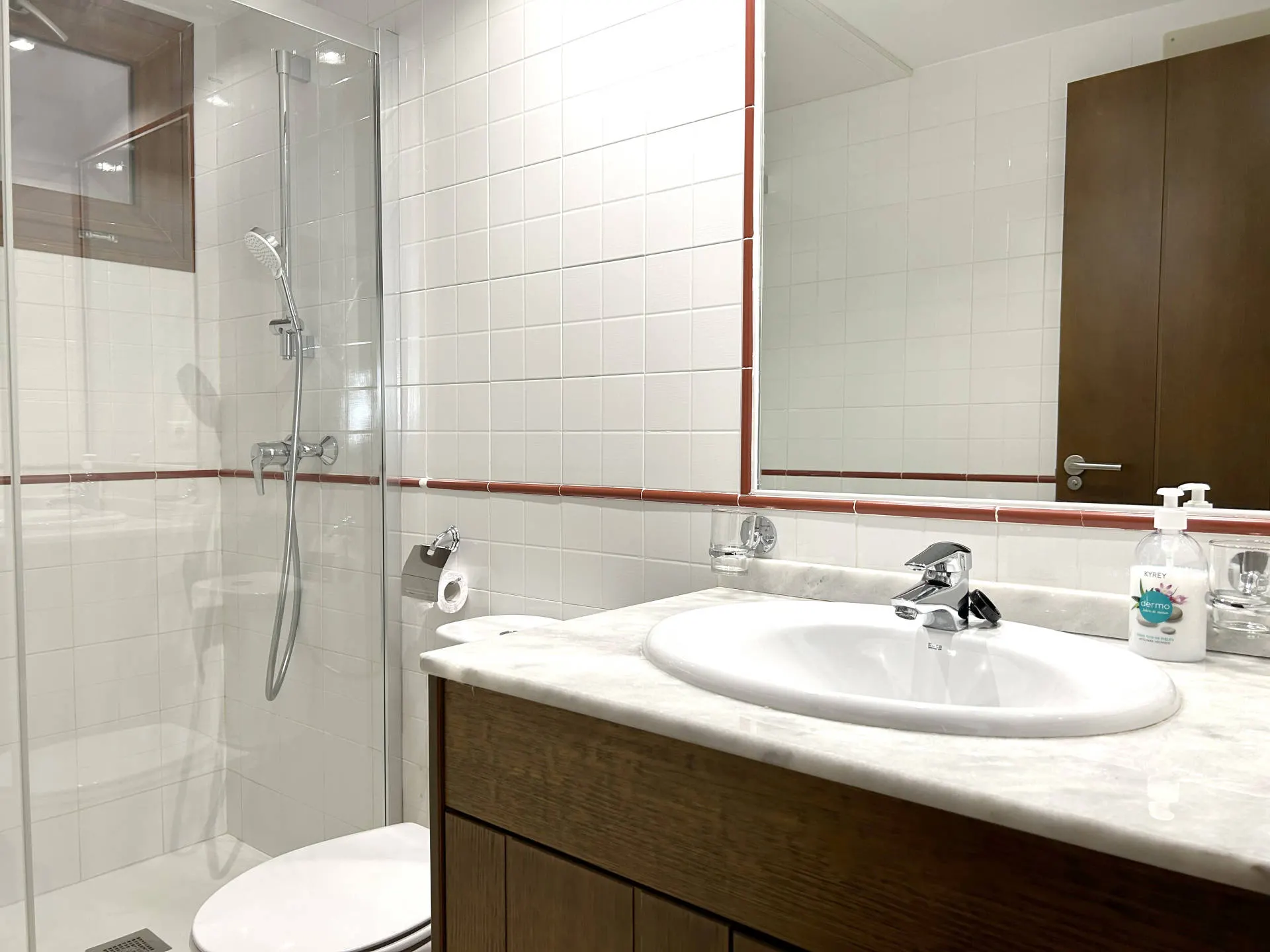 Kompleks oferuje dostęp do trzech basenów oraz zadbanych części wspólnych, zapewniając wysoki standard wypoczynku. Do dyspozycji pozostaje również miejsce parkingowe w garażu podziemnym.