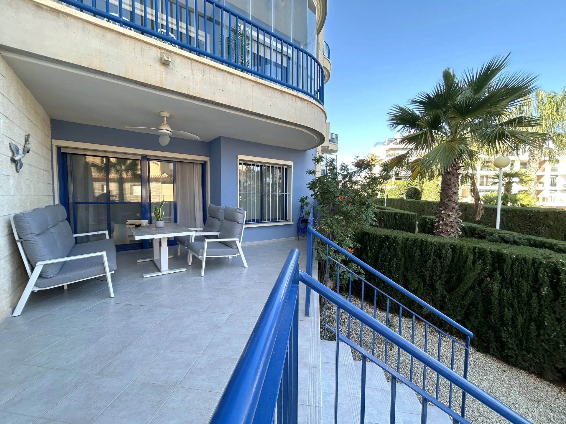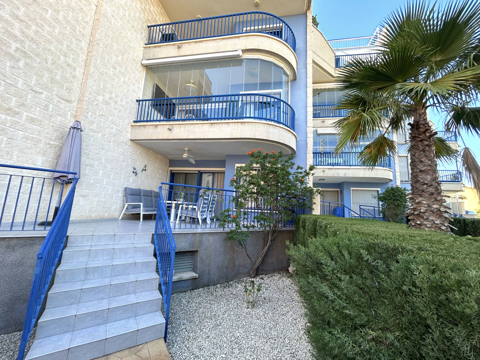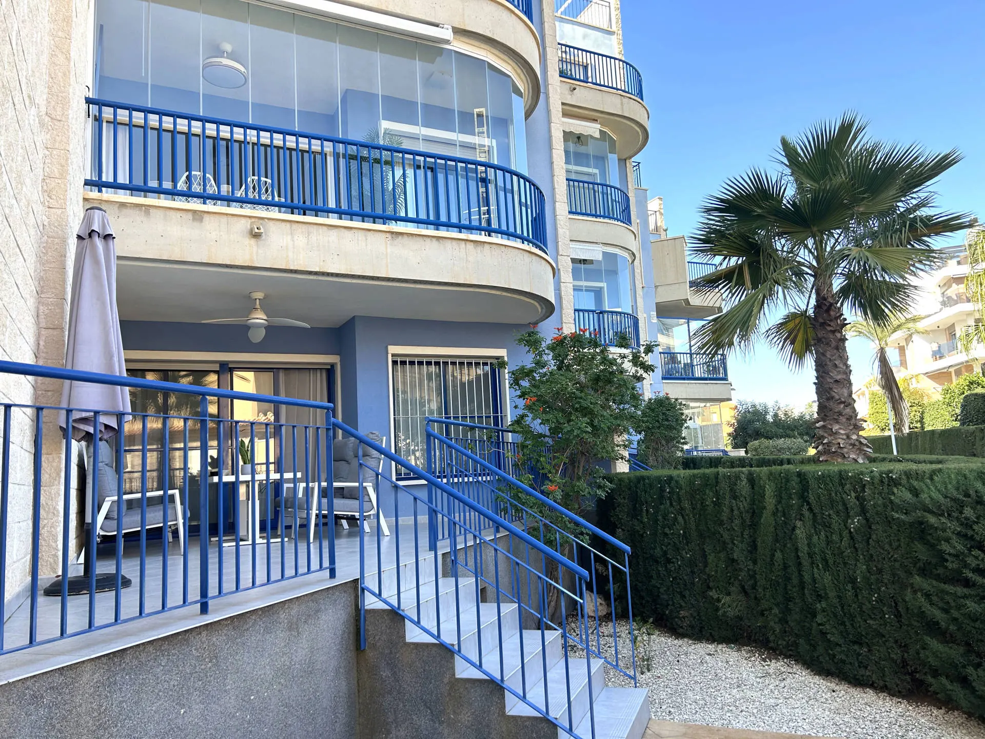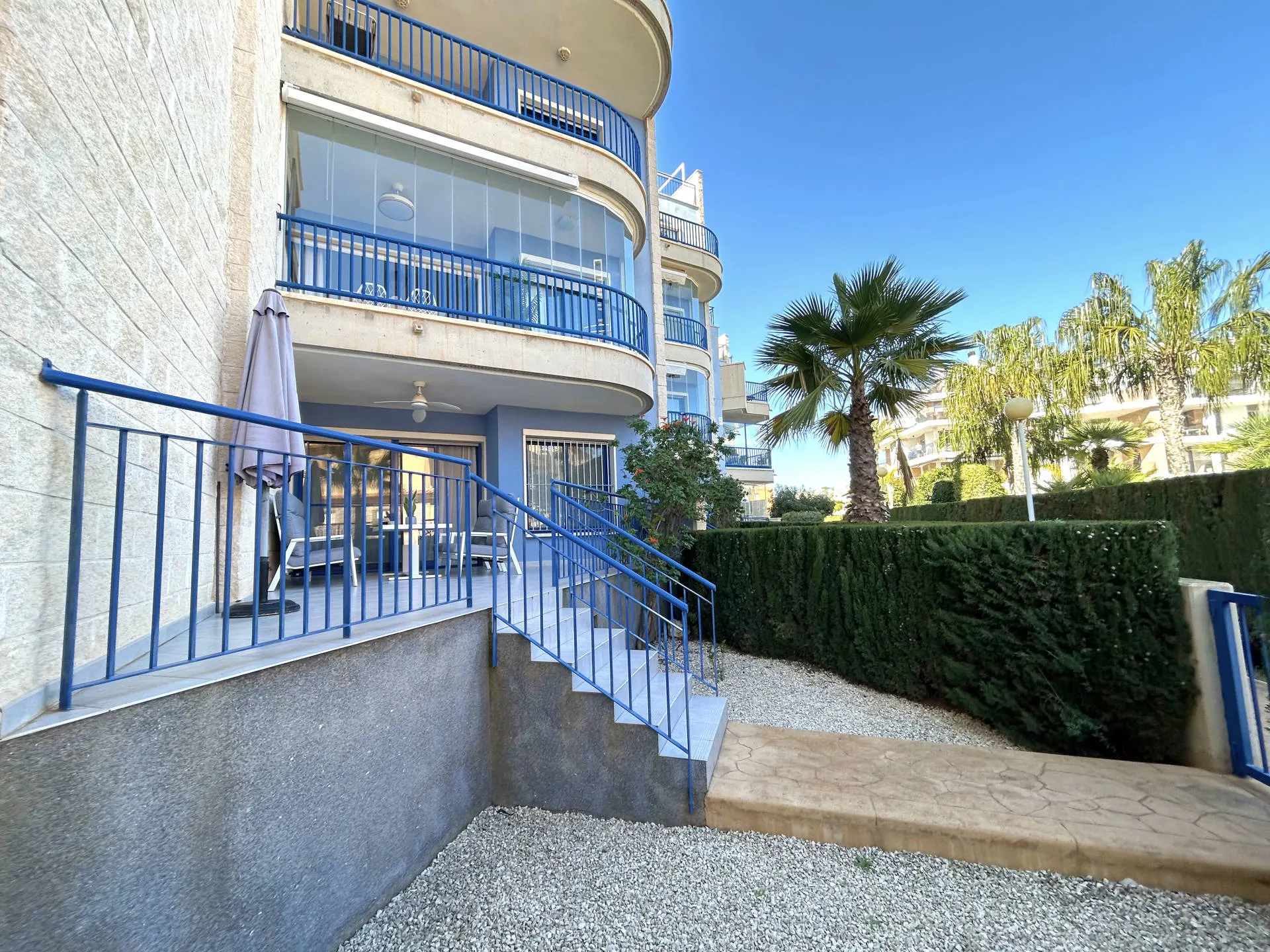 Elegancki apartament położony w prestiżowej lokalizacji Cabo Roig – Punta Glea, w bezpośrednim sąsiedztwie morza. Nieruchomość znajduje się na parterze i oferuje prywatny ogródek oraz widok na morze, co zapewnia wyjątkowy komfort wypoczynku w jednej z najbardziej rozpoznawalnych części Costa Blanca.
