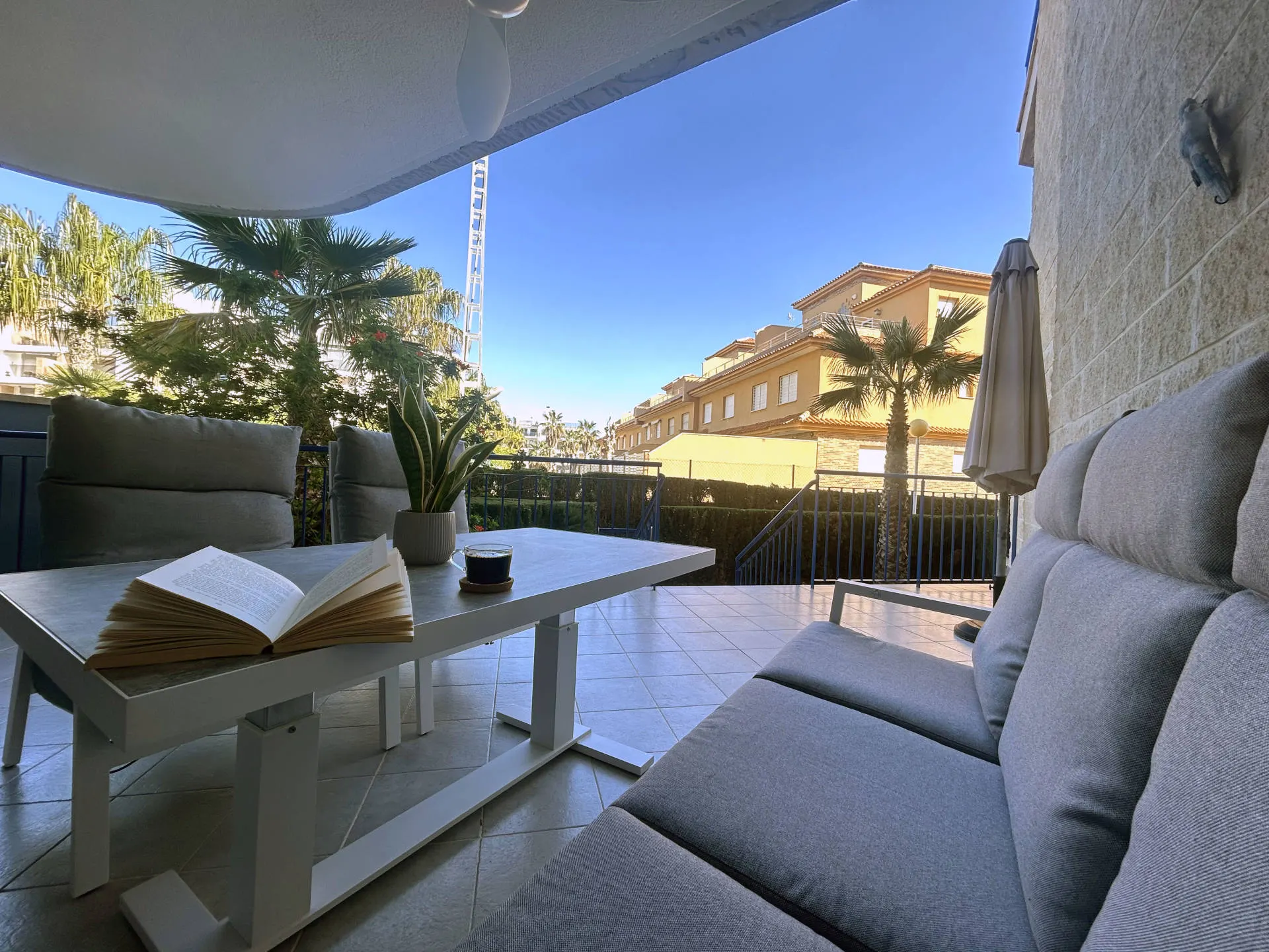 Dodatkowym atutem jest bezpośredni dostęp do przestrzeni zewnętrznej – prywatnego ogródka, idealnego do relaksu na świeżym powietrzu. Do dyspozycji pozostają również części wspólne, w tym basen, a także udogodnienia takie jak klimatyzacja i WiFi.