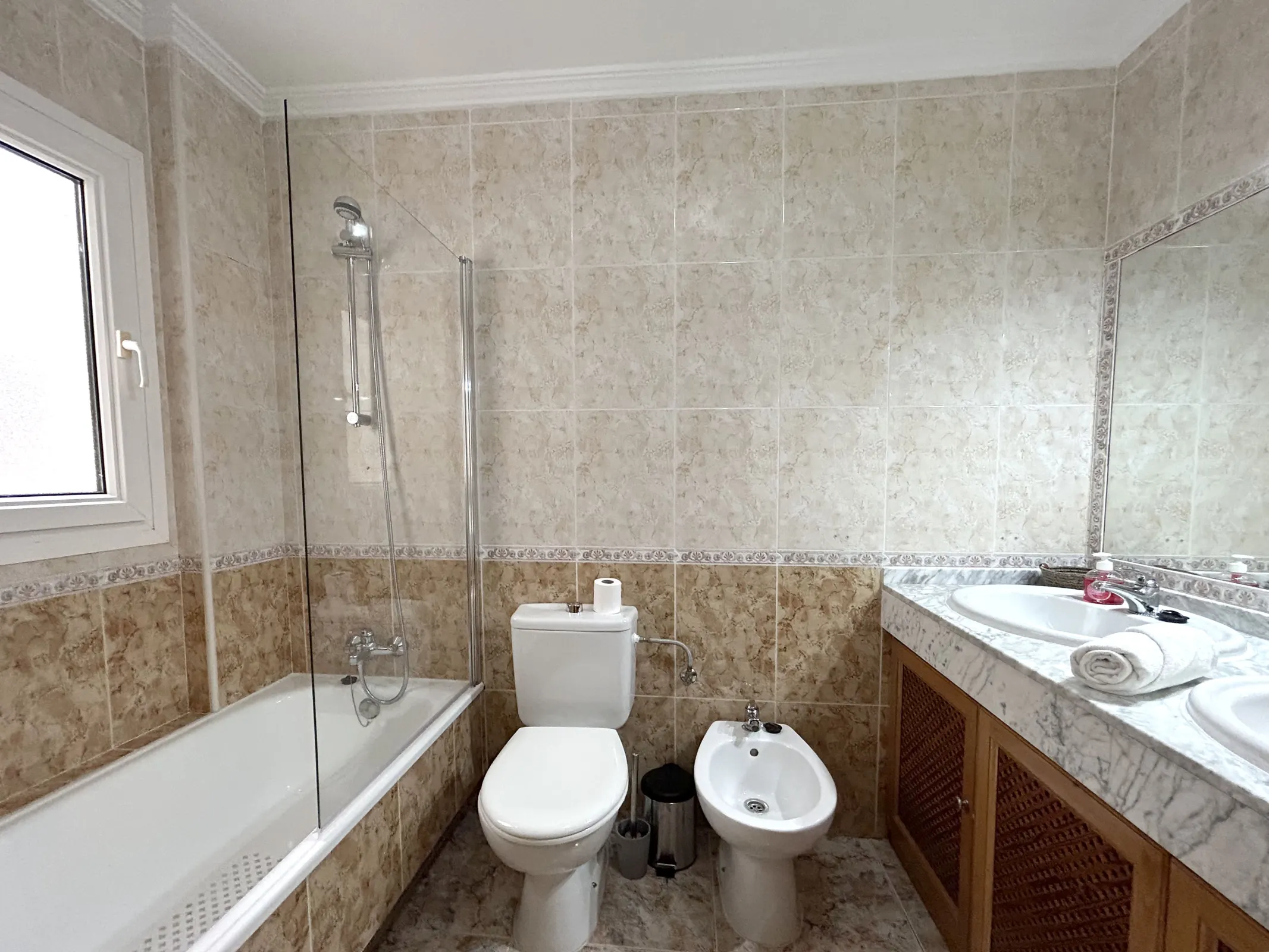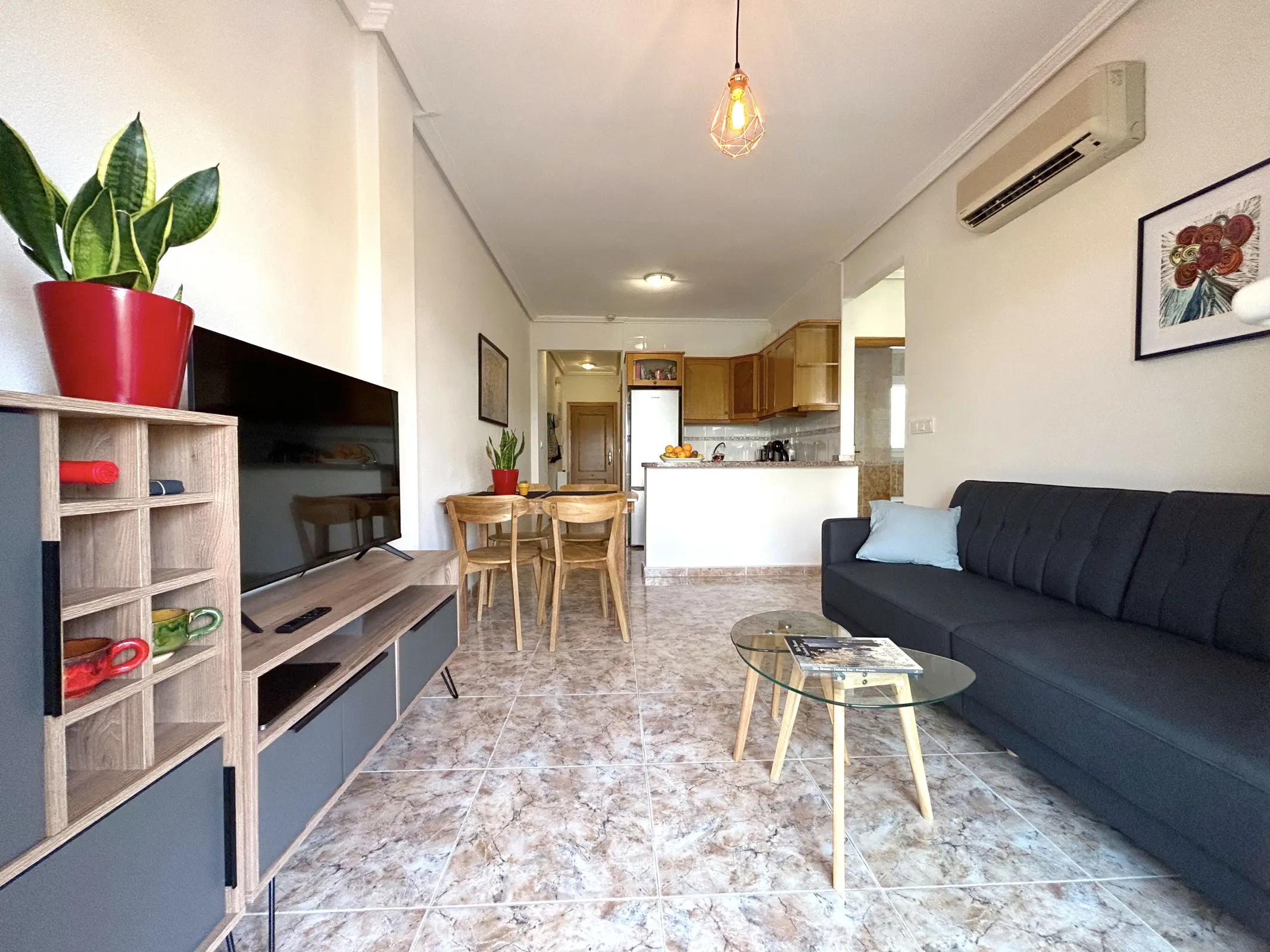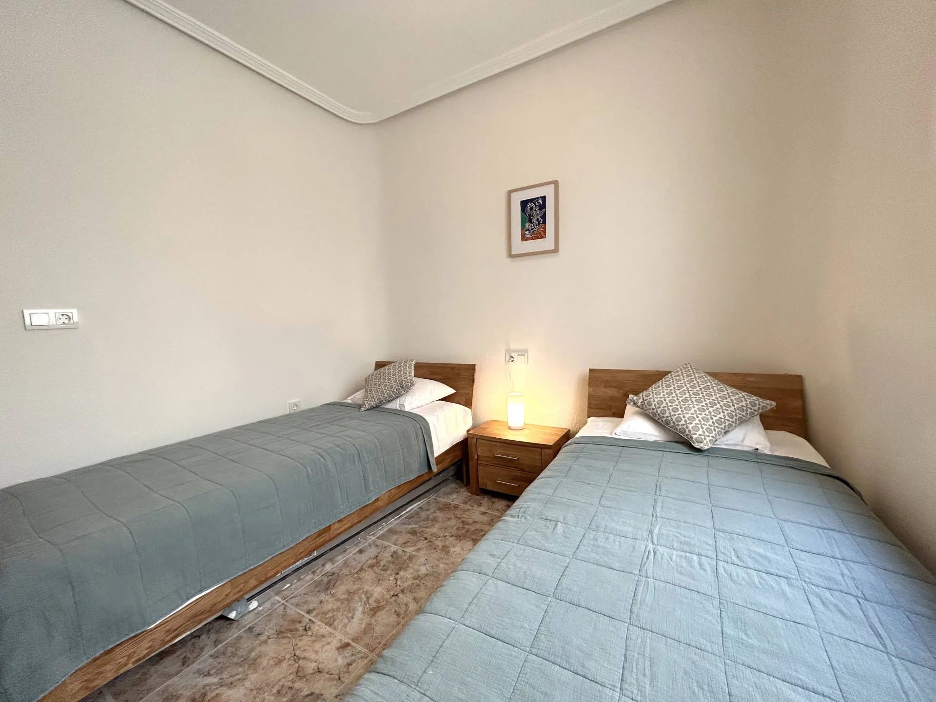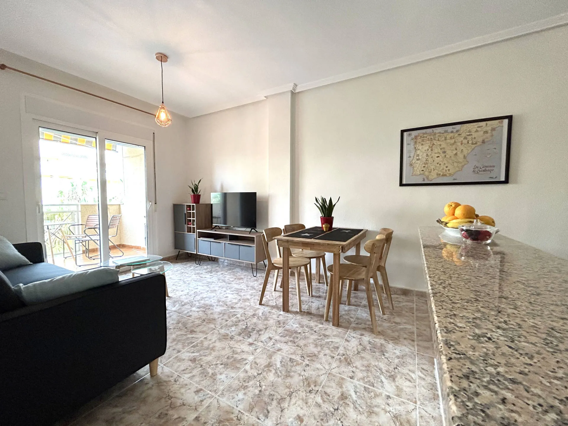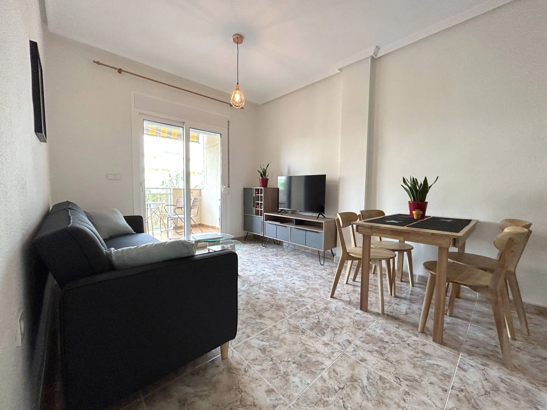 Komfortowy apartament położony w Cabo Roig, w kompleksie Marina Sol, w pierwszej linii od morza. Nieruchomość znajduje się na 2. piętrze i posiada południową orientację, co zapewnia doskonałe nasłonecznienie przez cały dzień oraz przyjemną, jasną przestrzeń do wypoczynku.