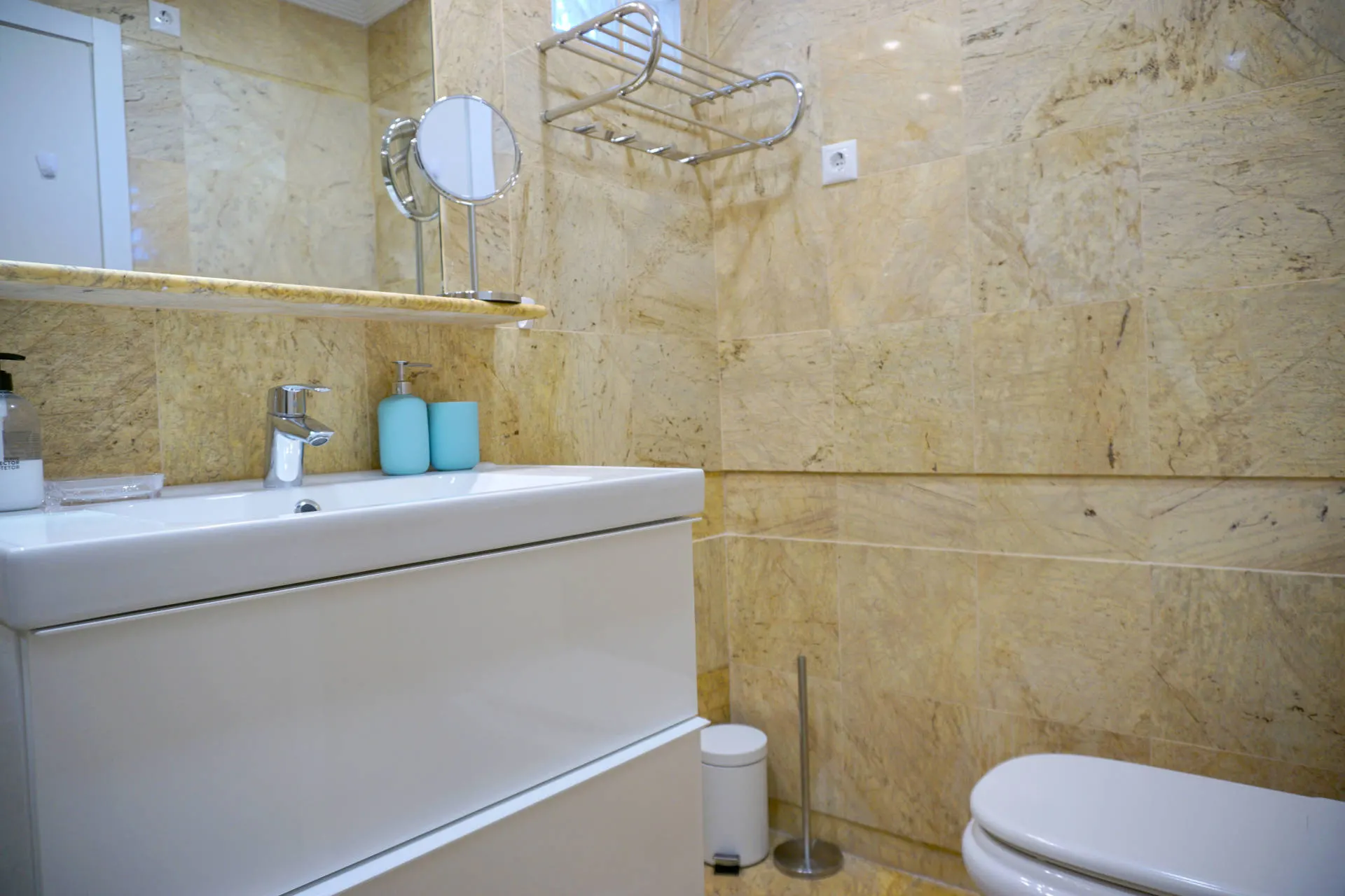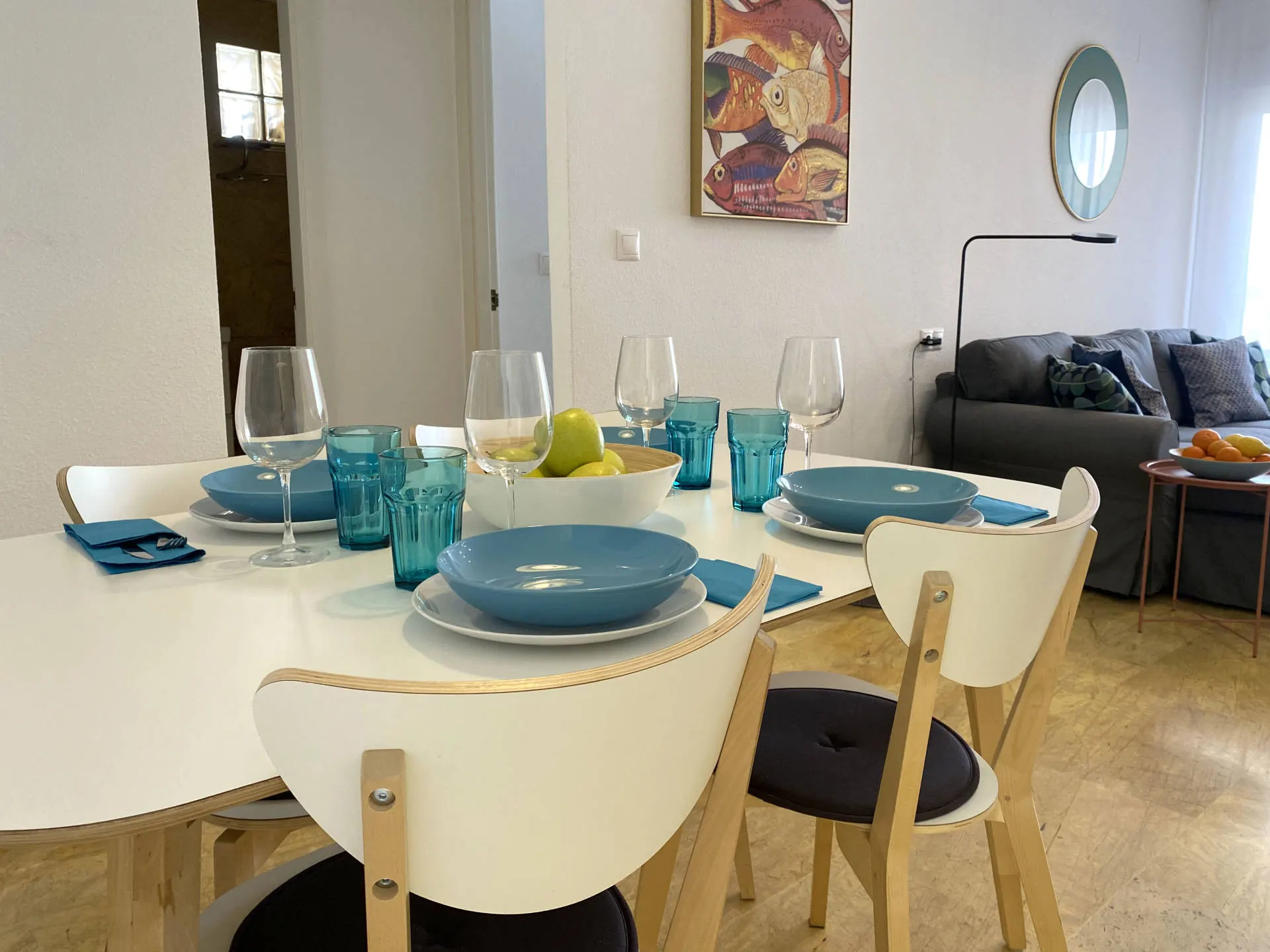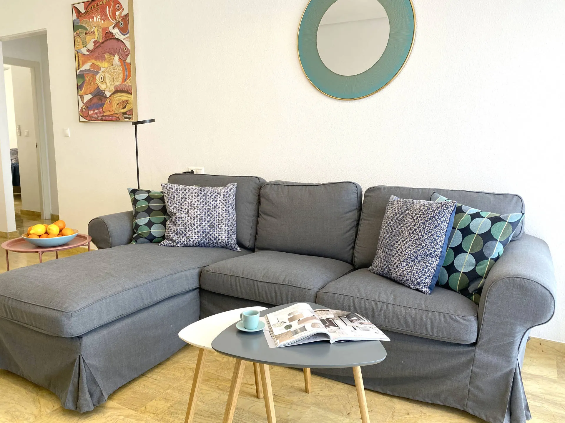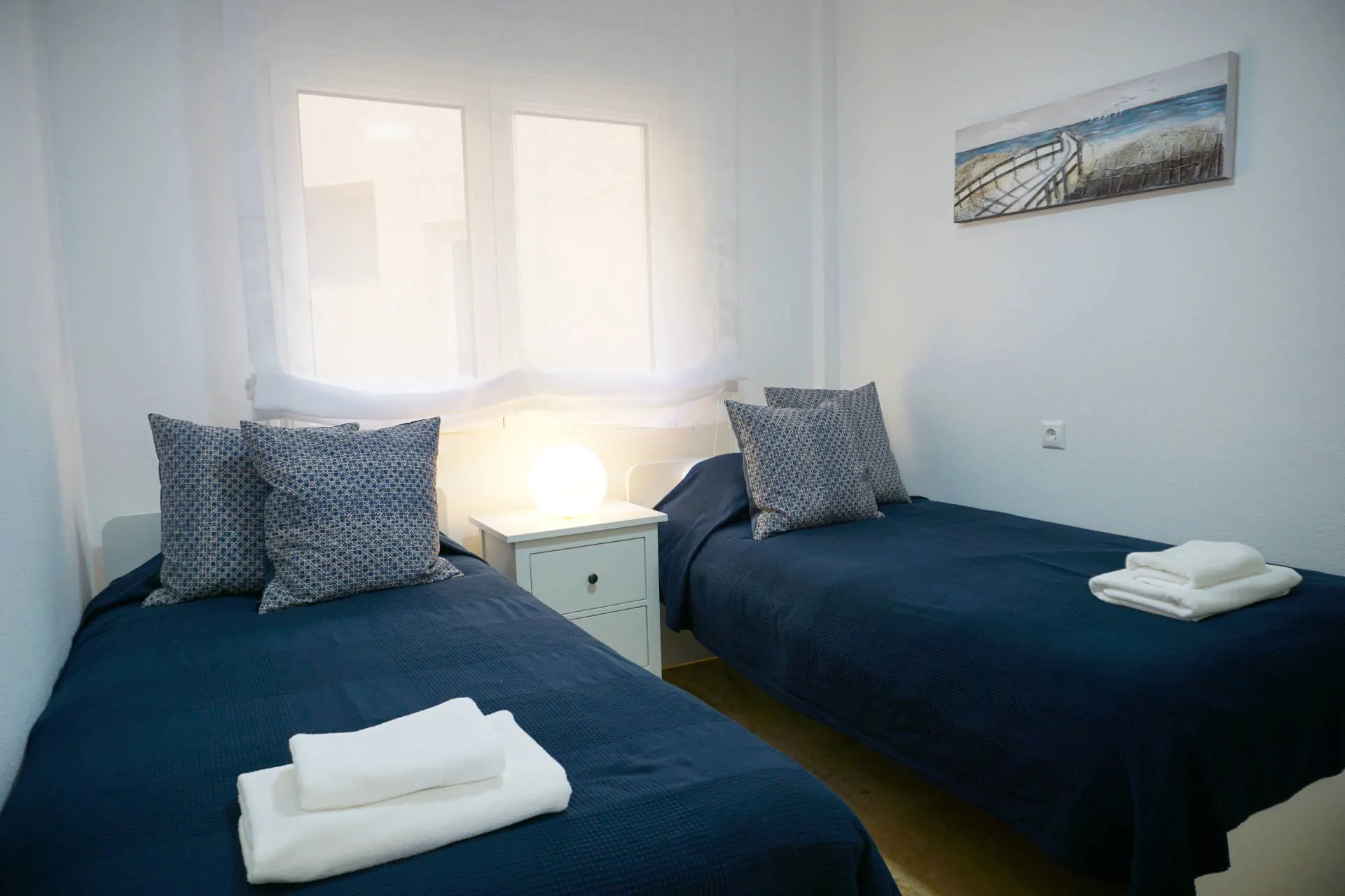 Apartament został zaprojektowany z myślą o funkcjonalności i wygodzie. Wnętrze obejmuje komfortowe sypialnie, łazienkę oraz jasny salon z w pełni wyposażoną kuchnią. Klimatyzacja zapewnia optymalną temperaturę w części dziennej, a dodatkowe wentylatory w sypialniach zwiększają komfort podczas cieplejszych dni i nocy.